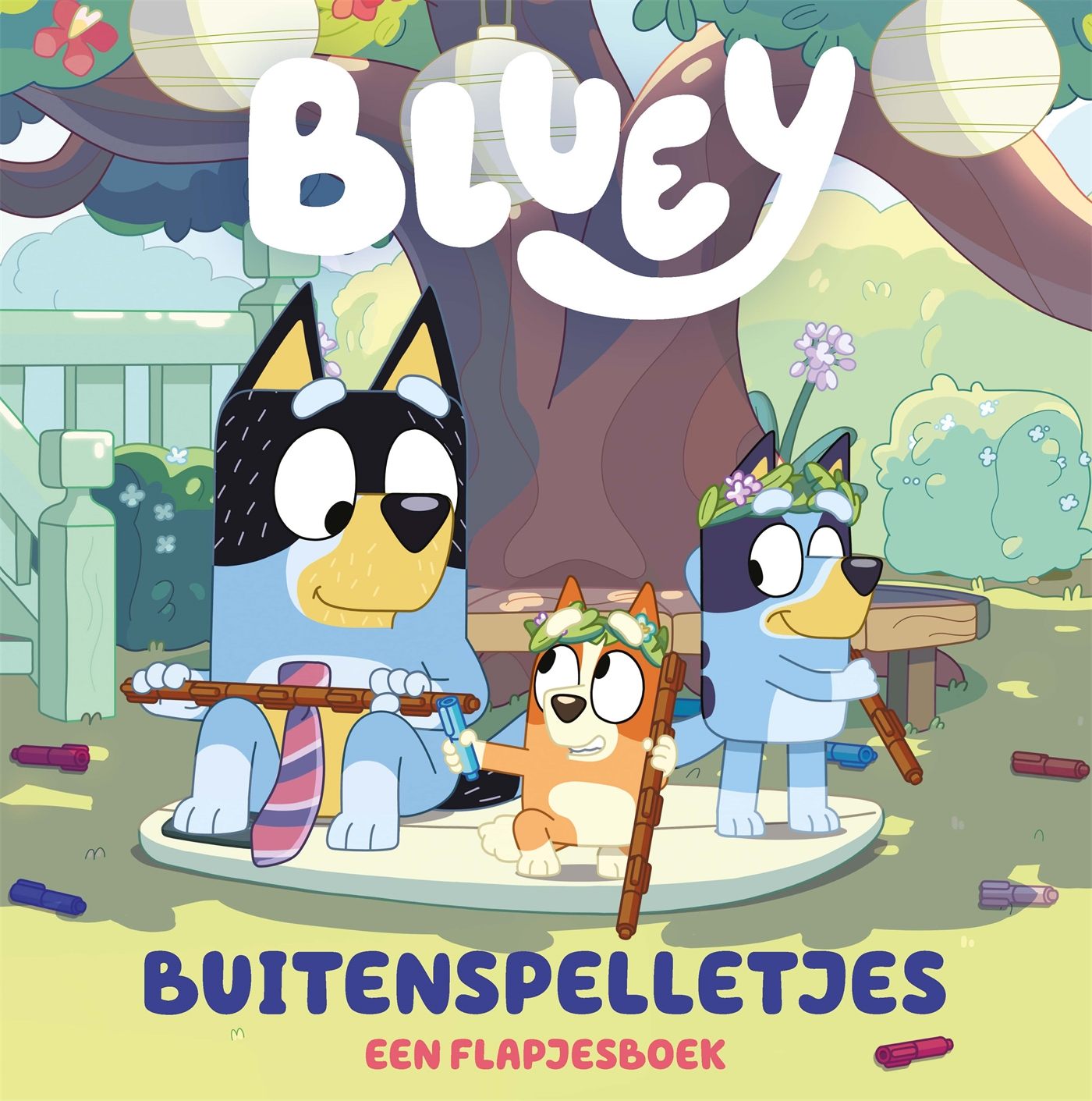 Ga in 'Buitenspelletjes' met Bluey naar buiten en speel de spelletjes! Bluey en Bingo zijn dol op buitenspelen, spelletjes zoals Rugeiland, samen op de wip met vriendjes, een dagje spelen op het strand en nog veel meer. Til de flapjes op en ontdek wat erachter verscholen zit. Een interactief boek met flapjes vol ontdekkingen, geschikt voor kinderen vanaf 3 jaar.