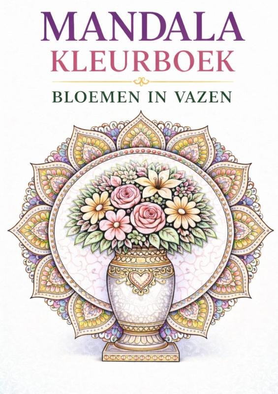 Mandala kleurboek, bloemen in vazen