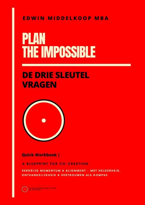 Plan the Impossible – Quick Workbook met De Drie Sleutelvragen is het praktische werkboek bij het gedachtegoed van Helderheid, Ontvankelijkheid en Vertrouwen. Waar de leeseditie inzicht geeft, nodigt dit workbook je uit om het direct te dóén. Je werkt met gerichte vragen, reflecties, contrastpagina’s en ruime invulvakken die je begeleiden naar het Ontvankelijke Midden: de staat van afgestemde openheid waarin richting, mogelijkheden en creativiteit vanzelf zichtbaar worden. Elke oefening is ontworpen om ruis te verminderen, helderheid te vergroten en jouw natuurlijke momentum te activeren. Het workbook mondt uit in het formuleren van jouw Heldere Momentum Stappen en een persoonlijk plan — niet dichtgetimmerd, maar in alignment met wie je bent en wat zich wil realiseren. Dit Quick Workbook is ideaal voor individueel gebruik, coaching, workshops, webinars en brainstormsessies. Een overzichtelijke, praktische en uitnodigende werkvorm om je plannen daadwerkelijk in beweging te brengen — zakelijk én privé.
