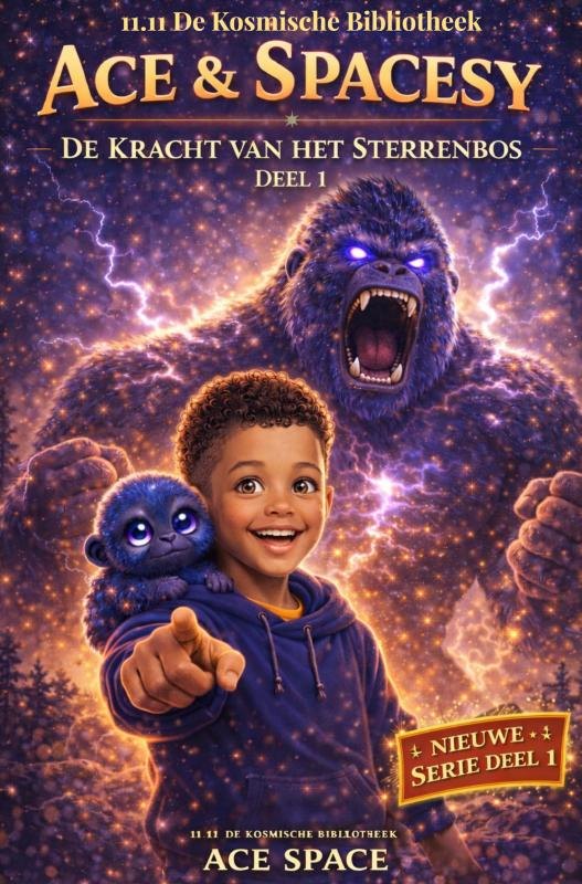 Ace vindt altijd dingen. Maar wanneer er een blauw aapje uit het Sterrenbos valt, verandert alles. Stacesy kan transformeren in een kosmische gorilla, en samen moeten ze een mysterieuze breuk onder het bos stoppen. Lichtwezentjes verdwijnen en 11.11 De Kosmische Bibliotheek wordt bedreigd. Een spannend, avontuurlijk jongensboek vol fantasie, humor en kracht.